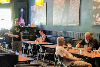 We visited on Thursday night and took seats alone at the bar. Other people were enjoying other comfortable spaces indoors and out. There were tables, comfy couches, and places to socialize outside (enjoying the evening’s relief after days of smoke-filled skies). It really is a nice space, providing room for large groups and more intimate conversation. But we sit at the bar whenever we can -- it goes with the name of the blog.